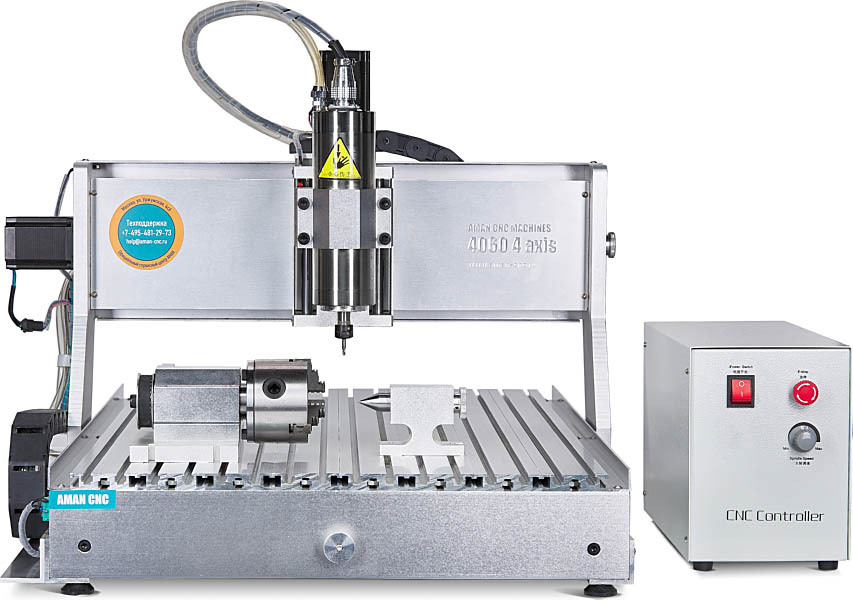 Модель мини-станка AMAN 4060 4axis 800W с самым большим рабочим столом в серии, мощным шпинделем и поворотной осью является одной из лучших для использования в промышленных целях. Однако сравнительно небольшие размеры позволяют установить его не только в мастерской небольшой фирмы, но и в помещении частного дома для личных целей. Станок выполняет широкий спектр операций: гравировку, резку, 3D-фрезерование. Он может работать с различными материалами: деревом, фанерой, оргстеклом, легкими металлами и другими подобными вещами. Он может производить обработку по четырем осям, а его программное обеспечение совместимо с самыми популярными графическими форматами и ОС Windows. Фрезерно-гравировальные станки с ЧПУ позволяют реализовать любые Ваши задумки. Все что Вам нужно, это подготовить модель/вектор в программе и передать задание на станок, остальное он сделает сам.AMAN 4060 4axis 800W — это профессиональный мини-станок с размером рабочей области 400 x 600 мм (40 x 60 см, ~A2). Это самый большой станок в линейке AMAN. Имеет мощный шпиндель 800 Вт (1.5кВт опционально) и полноценные четыре оси: XYZ + A-поворотное устройство. Поворотное устройство входит в комплект. Станок легко можно разместить в небольшой мастерской. Будет применим для раскроя, рельефной 3d-обработки (объемные предметы, барельефы, сувениры, клише), гравировки (персонализация предметов, создание табличек, ювелирные изделия, гравировка печатных плат), любых видов резки (буквы и надписи, вывески, макеты), сверление.