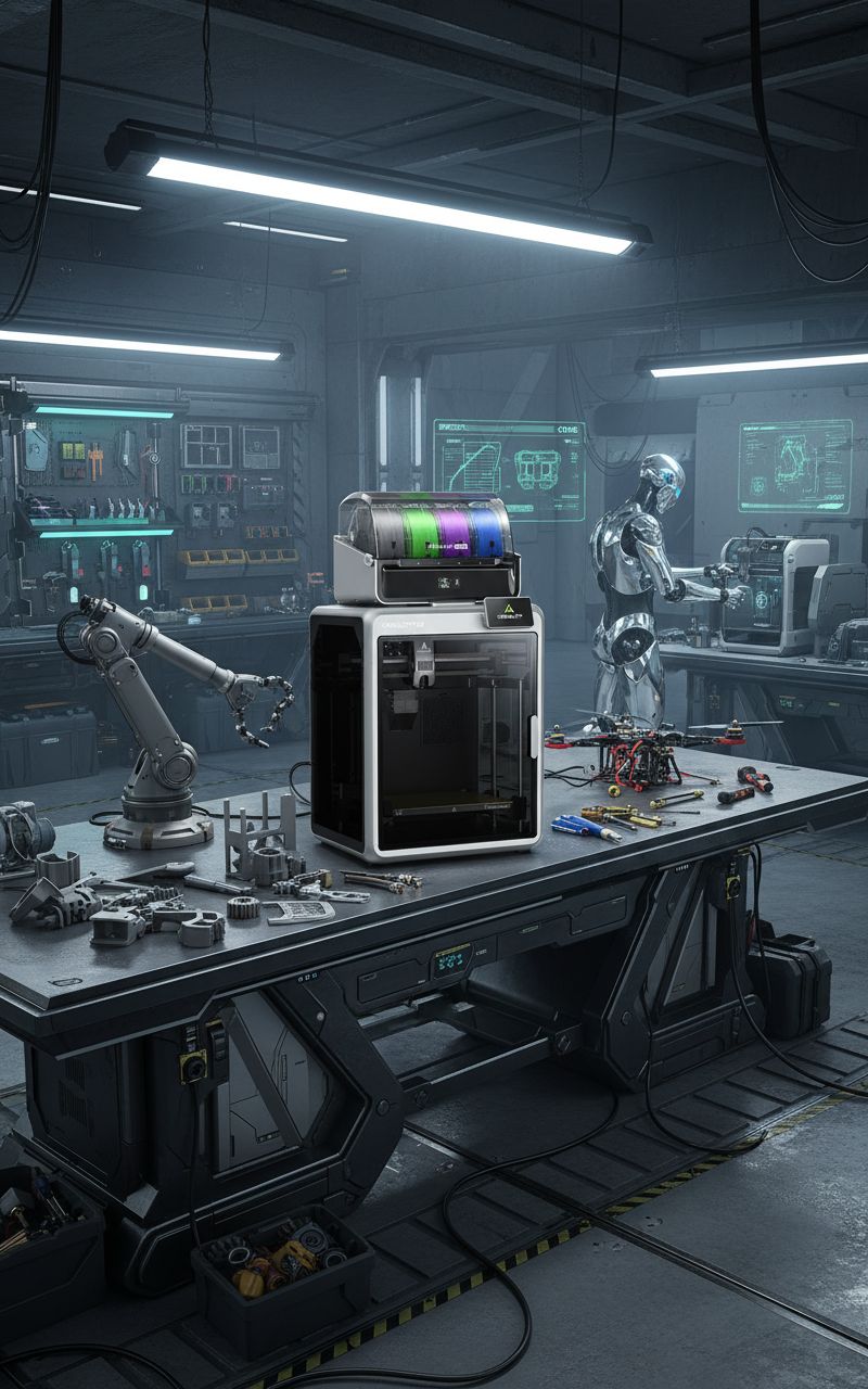 В то время как автономный принтер уже обеспечивает впечатляющую скорость печати 600 мм/с, экструдер с прямым приводом 300 °C и сверхточную механику линейных направляющих, система CFS выводит вашу настройку на новый уровень: