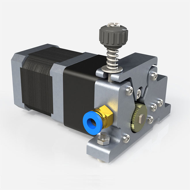 Степпер отделен от хотенда, что делает его еще легче, компактнее, обеспечивает меньшую инерцию движения, а также позволяет использовать большее пространство.