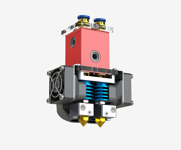 Двойной экструдер, запатентованный компанией Creatbot, со сверхвысокой температурой сопла (до 350 °C) с защитой от перегрева позволяет печатать различными материалами. Высота сопла также калибруется с высочайшей точностью. Диаметр сопла, идущего в комплекте составляет 0.4 мм. Также можно заказать сопла с другим диаметром - 0.3/0.4/0.5/0.6/0.8/1.0 мм.