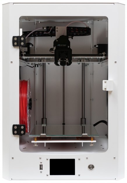 Принтер имеет закрытую камеру построения. Жесткая металлическая рама из 2 мм стали делает печать еще более стабильной. Объем печати составляет 200х200х210 мм, что позволяет создавать изделия небольшого и среднего размера, а также запустить мелкое серийное производство.