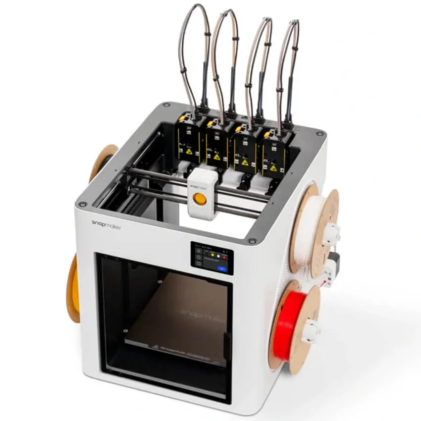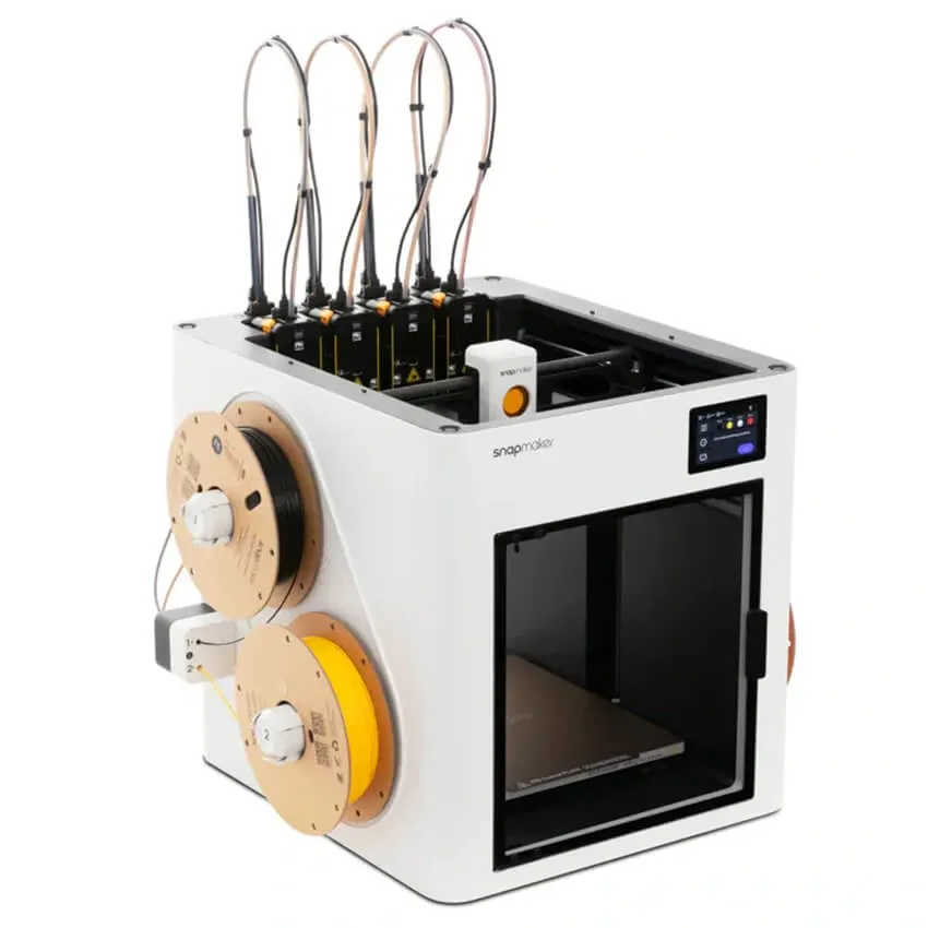 В отличие от систем типа AMS, Snapmaker U1 использует инновационную технологию SnapSwap™. Вместо проталкивания филамента через одно сопло, принтер физически меняет одну из четырех независимых печатающих головок. Это исключает длительные продувки (purging) и риск смешивания цветов в экструдере.